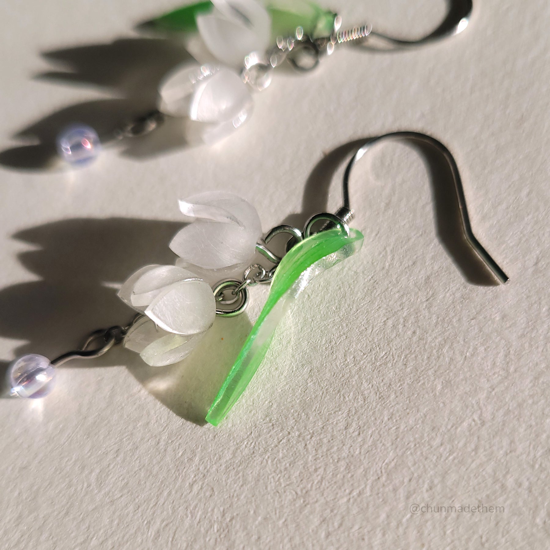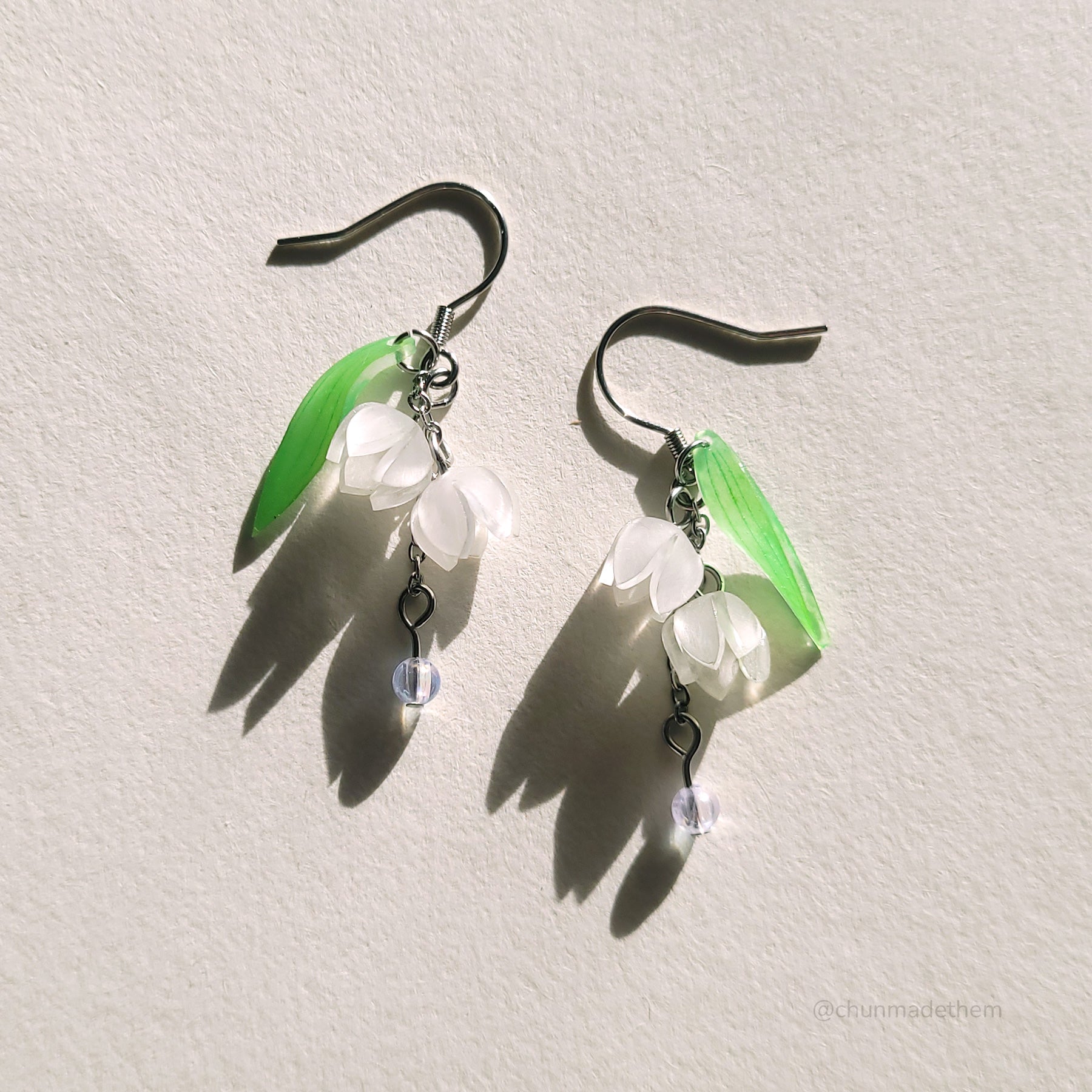 These earrings are inspired by lily of the valley and are exclusively crafted upon order. Each piece is handcrafted by me, ensuring unique attention to detail.